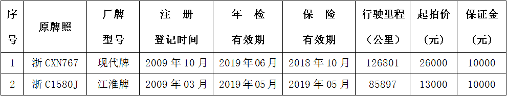 受委托,定于2018年6月8日上午10时整在温州中正拍卖有限公司(如拍卖场地变更,另行通知)对下述两辆二手车(不包括原牌照)进行公开拍卖,现将有关事项公告如下: