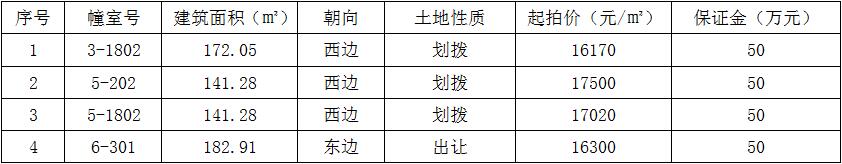一、标的及起拍价:标的为坐落于瑞安市安阳街道渔墩村的和鑫家园共4套住宅房产,详见下表: