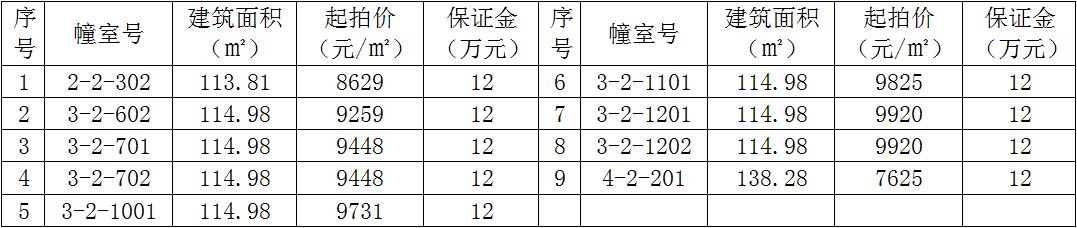 一、标的说明:标的为坐落于瑞安市塘下镇双桥村富丽景园共9套的住宅房产,权利性质为划拨,详见下表: