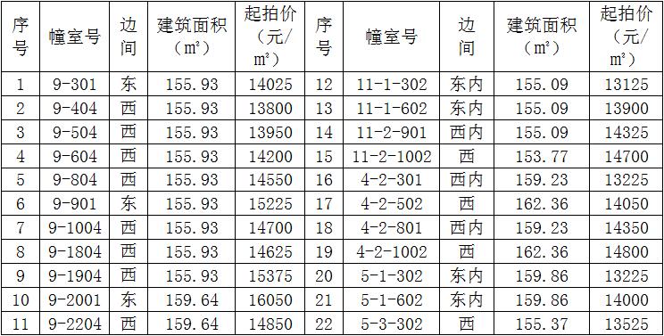 一、拍卖标的:标的为坐落于瑞安市安阳街道白岩桥村的白岩桥佳园共22套住宅房产,土地性质为划拨,竞买保证金为30万元/套,详见下表: