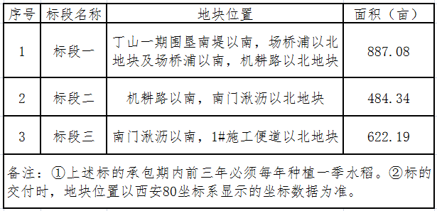 1、项目地址和规模:本次招标的承包经营权项目为瑞安市丁山三期北区国有农用地总计约1993.61亩(分三个标段),四至范围为东临东海,南至滩涂,西靠标准海塘,北至丁山一期围垦南堤(资料备索),详见下表: