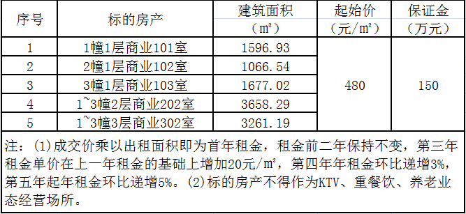 一、标的说明:标的为坐落于瑞安市安阳街道佳欣华庭约11259.97㎡商业房产的12年租赁权(捆绑转让),详见下表: