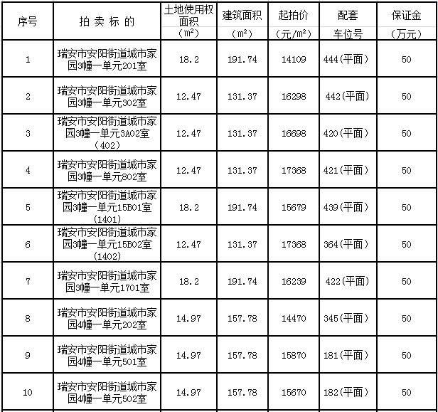 经瑞安市人民政府国有资产监督管理办公室批准,温州中正拍卖有限公司受瑞安市旧城改造发展公司委托,定于2021年7月26日14时30分,在瑞安市公共资源交易中心对下列标的进行公开拍卖,现公告如下: