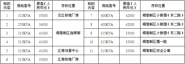 一、标的:瑞安经济开发区发展总公司名下11台工程临时变压器,详见下表: