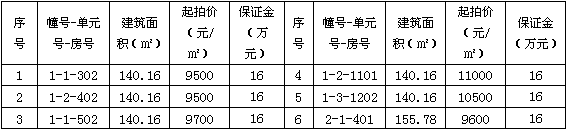 一、标的及起拍价:标的为坐落于瑞安市安阳街道十八家村的十八家景苑共6套住宅房产,土地性质为划拨,详见下表: