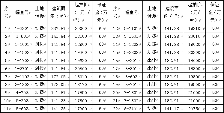 注:序号1标的为顶层跃层房产。